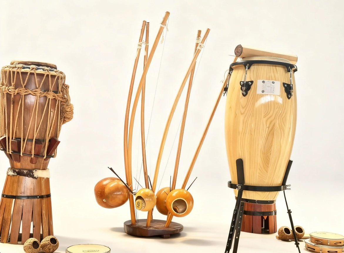 Die musikalischen Grundlagen werden in separaten Musiktrainings vermittelt, die in den regulären Trainingsalltag integriert sind. In unserer Gruppe besteht die musikalische Begleitung aus dem Zusammenspiel von drei Berimbaus (Musikbögen) – Gunga, Médio und Viola –, einer Atabaque (Trommel), zwei Pandeiros (Tamburine) und einem Agogô (Glockeninstrument). Alle weiteren Capoeiristas beteiligen sich durch rhythmisches Händeklatschen.