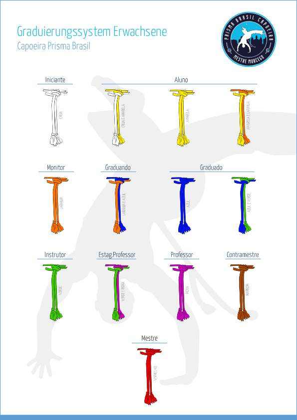 Viele Capoeira-Gruppen haben ihr eigenes Graduierungssystem, daher können Farben und der damit verbundene Schüler- oder Trainergrad stark variieren.